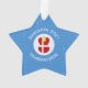 Hanukkah Dekor Sternschmuck für die Ferienzeit zeigt einen Engel mit der rot-weißen Flagge von Dänemark. Der dänische Engel Hanukkah wurde für Familien mehrerer Religionen konzipiert und befindet sich im Zentrum weißer, quadratischer Plätze, umgeben von blauen, quadratischen Plätzen. Fügen Sie einen Namen hinzu, der personalisiert werden soll. Anpassen durch Hinzufügen des Jahres. Oder fügen Sie Ihren eigenen Text hinzu.