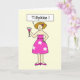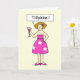Eine Cartoondame stehend auf einem enormen Kuchen, ein Cocktail und ein Sprichwort "Tillykke halten!" (Glückwünsche auf Dänische)