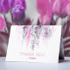 Botanische Blütenwein Gastgeschenk Hochzeit danke Ihnen Karte. Koordiniert mit kaskadierenden Blume Rosa, Indigo lila, graue Wasserfarbe moderne abstrakte Kunst Hochzeitskollektion. Ideal für Hochzeiten, Veranstaltungen und allgemeine Feiern dank oder Geschenk. Personalisieren Sie die Nachricht oder das Ereignis mit Ihren eigenen Namen. Original abstrakte moderne Kunst und Design von Sarah Trett für www.mylittleedenweddings.com