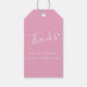 Weißes und rosa einfaches Skriptgeschenk etikettiert Ideal für Hochzeiten, Ereignisse und allgemeiner Feierdank oder Geschenkgeben. Personifizieren Sie mit Ihren eigenen Namen und Mitteilungen auf der Rückseite. Ursprüngliches weißes Herz und Skript entwerfen durch Sarah Trett. www.sarahtrett.com für www.mylittleedenweddings.com