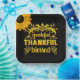 Dankbar, Dankbar, Selig Typografie in Gelb mit Sonnenblumen in schwarz mit einer Sonnenblume in der Ecke.