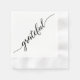 Fügen Sie Ihre Servietten diese Touch moderner Eleganz hinzu. Das Wort "Dankbar" in einem handgeschriebenen Schriftart mit langen Schwänzen. Ein trendiger und schicker Look. Probieren Sie es für besondere Feiertage wie Erntedank und Weihnachten.