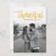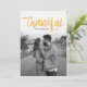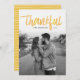 Versenden Sie eine stilvolle Erntedank-Fotokarte mit "Dankbar" in einem handgeschriebenen Script-Schriftart, goldenem Aquarell-Stil und Platzhaltern für Ihr Foto und Ihren Text.