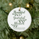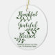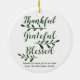 Dankbar Grateful Gesegnet moderne Schrift Kalligraphie Typografie Erntedank personalisiertes Urlaubsgeschenk Gönnen Weihnachtsfeiertag Ornament. Vollständig anpassbarer dunkelpiniengrüner Text auf weißem Hintergrund.