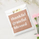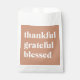 Feiern Sie die Jahreszeit der Dankbarkeit mit diesen charmanten, dankbar gesegneten Gefälligkeitssäcken - ideal für Erntedank-Dinner, freistehende Ansammlungen, Hochzeiten im Herbst und Ernte-Party. Diese rustikalen und modernen Taschen mit einem warmen Terrakotta-Hintergrund und knusprigen weißen Schriftzügen verleihen Ihrem Tisch eine herzliche Touch. Füllen Sie sie mit süßen Leckereien, hausgemachten Keksen oder kleinen Geschenken, um Ihre Gäste zu erfreuen. Ideal für Herbstveranstaltungen, diese Taschen sind doppelt so schön wie Dekor und besinnliche Nimm-Zuhause-Favoriten. Koordinieren Sie mit passenden Wasserflaschen-Etiketten, Tischdekor und Party-Vorräten für ein wunderbar zusammenhängendes Herbstfest.