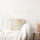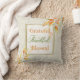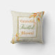 Kissen mit "Dankbar gesegnet" in einem dekorativen Schriftart, umgeben von Herbstblättern. Hintergrund hat ein subtiles Blatt Muster.