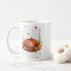Dankbar, gesegnet, Kürbiskaffee fällt als Kaffeetasse
