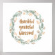 Ein schönes Poster, das man als Wohngestaltung aufhängen kann. Es enthält einen Herbstkranz aus gelben, braunen und grünen Blätter und hat eine Formulierung, die "dankbar dankbar gesegnet".