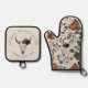 Dieses Western Friendsgiving oder Erntedank kundenspezifische Ofen Mitt & Topf Halter Set Features: Ein Topfhalter mit handgezeichnet Western-Schädel mit Rose-Illustration in schwarzer Tinte, mit den bearbeitbaren Texten, "Dankbar, Glücklich, gesegnet". Personalisieren Sie Ihre Veranstaltung und das Jahr. Ein Mitt im Ofen mit einer Herbsternte mit einem Kuhschädel mit Rose, Kürbissen, Herbstblättern und Beeren. Elfenbeinhintergrund