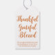 Dankbar Grateful Gesegnet moderne, maßgeschneiderte Skript Erntedank Urlaubsgeschenk Fvor Tags. Vollständig anpassbare Orangenkürbis-Gewürz-Textfarbe, Kraftpapier oder Weißpapier-Optionen.