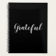 Dankbar Schwarz-Weiß-Schrift Kalligraphie Text modern niedlich elegante Dankbarkeit Planner. Anpassbarer weißer Text auf schlichtem schwarzen, soliden Hintergrund. Farben sind bearbeitbar. Sie können es so verlassen, wie es ist, oder personalisieren es mit Ihrem Namen, Initialen, Jahr, etc Wellness-Journal, Tageszeitung Dankbarkeit, persönlichem Tagebuch.
