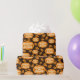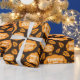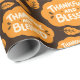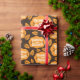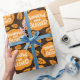 "Dankbar und gesegnet Fall Orange Blätter Dark Brown Wrapping Paper" zeigt farbenfrohe Herbstblätter rund um den "Glücklichen und Gesegneten" Text, die Wärme und Dankbarkeit zu jedem Urlaubserlebnis.