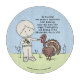 Little DC hält einen Maiskolben, von dem er Stücke zieht, um ihn mit dem bunten Truthahn zu teilen, der in seiner Nähe stehend ist. Das Zitat von David A. Carrizales sagt, dass er dankbar sei und innehalte, um Gottes Segen heute und jeden Tag zu schätzen. Diese lustige kleine Erntedank-Illustration ist von Christie Black.