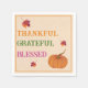 Erntedank Party Servietten in weißer Typografie "Dankbar, Dankbar, gesegnet" mit einem orangefarbenen Kürbis und Herbstlaub Detail. Aquarellbilder von mir gemalt!