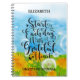 Individuell gestaltbare Namensgestaltung mit einem skurrilen Schriftzeichen-Zitat: "Beginnen Sie jeden Tag mit einem dankbaren Herz." Auf einem Hintergrund von Aquarellen mit blau, grün, gelb und orange bemalten Lüstern.