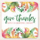 Diese Erntedank Jahreszeit Papier trinken Bänke haben einen hübschen Herbstblattrand oben und unten. Die verwendeten Farben sind Gold, Grün, Grün und Orange. In der Mitte ist stilisierter Text in grün und hellorange, der sagt "Gib Dank mit einem dankbaren Herz". Alles ist auf einem knusprigen weißen Hintergrund platziert. Schön für Ihren Erntedank Tisch, oder durch die ganze Herbst Saison!