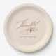 Dankbar Kalligraphie & Blätter Familie Erntedank Paper Teller. Personalisieren Sie diese, indem Sie Ihren Familiennamen hinzufügen.