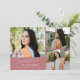Moderne und elegante Abschlussfeier-Ankündigungs-Fotokarte mit 3 Fotos auf der Vorderseite und 1 auf der Rückseite. Der Text lautet "dankbar für Ihre Unterstützung" in Schreibschrift. Fügen Sie den Namen, die Informationen und die Nachricht des Absolventen hinzu, um diese Karte zu personalisieren. Rosa.