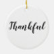 Dankbar Schwarz-Weiß-Schrift Kalligraphie niedlicher Erntedank Weihnachtsschmuck Keramik. Elegantes, modernes Design.