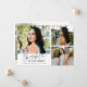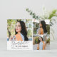 Moderne und elegante Abschlussfeier-Ankündigungskarte mit 3 Fotos auf der Vorderseite und 1 auf der Rückseite. Der Text lautet "dankbar für Ihre Unterstützung" in Schreibschrift. Fügen Sie den Namen des Absolventen, Informationen und eine Nachricht hinzu, um diese Karte zu personalisieren. Weiß.