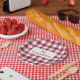 Dankbarer Burgundy White Gingham Karierter Ernteda Pappteller