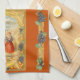 Schöne Küchenhandtücher, die zwei Pilger zeigen, die ihren Kopf in Dankbarkeit für die reichliche Ernte um sie herum bohren. Dieses Bild ist lebendig und hell mit einem dunklen Hintergrund. Es ist aus einem Erntedank von 1911, das wir restauriert haben.