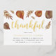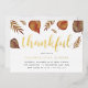 Laden Sie Freunde und Familie ein, um gemeinsam mit diesen eleganten und charmanten Erntedank-Dinner-Einladungen, die "dankbar" in Goldfolie handgeschriebenen Kalligraphie-Skripten, umgeben von fallenden Herbstblättern in warmen Aquarelltönen, zu feiern. Personalisieren Sie Ihre Erntedank-Dinner-Details mithilfe der Vorlagenfelder.