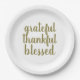 Dankbarer dankbarer gesegneter moderner Typografie Erntedankfeiertagsdekorzitat-Papier-Teller.