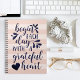 Verbreitet eine Haltung der Dankbarkeit. In unserem handgeschriebenen Typografie-Notizbuch-Design finden Sie das Zitat "Beginnen Sie jeden Tag mit einem dankbaren Herz" in handgeschriebenem Kalligrafieschrift, das mit Wimpern und einer Herz-Illustration verziert ist, auf einem Ton mit rot-rosa gestreiftem Hintergrund.