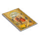 Ein schönes Notizbuch mit zwei Pilgern, die sich in Dankbarkeit für die reichhaltige Ernte um sie herum die Köpfe bohren. Dieses Bild ist lebendig und hell mit einem im Herbst orangefarbenen Hintergrund. Es ist aus einem Erntedank von 1911, das wir restauriert haben.