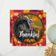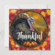 Diese schöne Abbildung eines Truthahns beinhaltet das Gefühl "Dankbar". Auf der Rückseite ist viel Platz für Ihre Speisekarte.