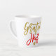 Positive Geselligkeit, während Sie sich mit Ihrer Latte entspannen! Stilvolle Typografie in Rot und Gold Drehbuch Grateful Heart mit einem goldenen Herz Motiv und weißem Hintergrund.