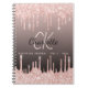 Rose Gold, rosa Imitate Glitzer Tropfen, Farbe Tropfen aussehen. Schwarz, Braun, latte Kaffeemaschine, farbiger Ober-Hintergrund. Personalisieren und fügen Sie Ihren Namen, Monogramm-Initialen und einen Titel, Dankeschön-Journal. Der Name ist mit einem modernen handgeschriebenen Stilskript geschrieben. Schwarz und Rose goldfarbene Buchstaben.