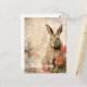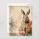 Ein braunes Kaninchen wird vor einem abstrakten Hintergrund dargestellt, der direkt mit einem aufmerksamen Blick auf den Betrachter schaut. Im Vordergrund wird das Kaninchen von einem rosa rosafarbenen Steg begleitet, der sich im Kontrast zu den gedämpften Tönen der Kulisse befindet.
