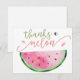 Vielen Dank für Ihre Gäste, die gefeiert haben! Dieses lustige Wassermelon-Thema danke Postcard bietet eine Aquarell-Wassermelone und lustige Skript-Sprichwort "dank einer Melone" Personalisieren Sie mit Ihren Informationen oder klicken Sie auf "Klicken Sie, um weiter anzupassen", um Schriftart Stile, Größe und Farben zu bearbeiten.