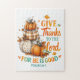 Friedliches, farbenfrohes Design mit einer schönen Herbst/Herbst-Szene mit einem dekorativen Kürbis gestapelt und Herbstlauben. Der farbenfrohe inspirierende Text lautet: "Danke an den Herrn für seine gute Arbeit. Punkt 136:1" Dieses Design ist auf einer Vielzahl von Produkten erhältlich.