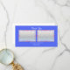 Eine blaue Dankeschön-Flat-Fotokarte für 2 Fotos, mit Wirbel und kleinen roten Herzen rund um den Rahmen. Anpassbarer Text lautet: Danke - Ihre persönliche Nachricht hier, Dan & Sue.