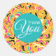 Ein fröhlicher Weg, um Ihnen einen Dankeschön Aufkleber zu Ihrer Korrespondenz oder Geschenke hinzuzufügen, jeder Gebrauch, ob persönlich oder geschäftlich wird mit diesem hellen und fröhlichen goldenen gelben gelben, orange, heiß rosa, türkisblau und schwarz mit weißen Akzenten in spielerischen Wirbel, danke Aufkleber.