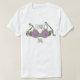 Ein lila, zentraler, limiengrüner BH mit dem Sprichwort "Danke Bra".