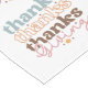 Farbenfrohe Retro-Typografie-Danke, danke, danke, geben in blau, orange, braun und rosa auf weißem Hintergrund.