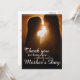 Danke, dass du hier bist – Muttertag | Silhouetten einer Mutter und eines Kindes gegen das Licht, auf einer Muttertagskarte in einem klassischen Design.