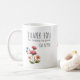 Lehrer Geschenkidee Tasse mit niedlicher Illustration und trendiger Schriftart Typografie. Die Vorlage ist für Sie bereit, mit Ihrem Namen zu personalisieren und Sie können auch den Namen Ihres Lehrers auf der Rückseite sowie eine Slogline hinzufügen, wenn Sie möchten (wie z.B. der beste Lehrer je). Das Design enthält den Wortlaut "Danke, dass du mir beim Wachsen geholfen hast" und eine süße kleine Blume und farbenfrohe Liebe Herzen.