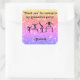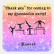 "Danke", dass du zu meinem Gymnastik-Party gekommen bist! Quadratischer Aufkleber, personalisieren Sie mit dem Namen Ihres Turniers!