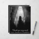 Diese Dankeschön-Karte hat ein dunkles, modernes und elegantes Design mit einem weißen Rahmen um die Vorder- und Rückseite. Person geht in das Licht - Auf Wiedersehen meine Liebe Die Namen, Text und Datum können in der Vorlage angepasst werden. Entwickelt von pASob-dESIGN.