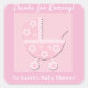 Wir danken Ihren Baby Duschgästen mit diesen niedlichen und trendigen rosa Babyduschklebern. Kleine rosa und weiße Babywagen mit Blumendekoration. Personalisieren Sie Ihre eigene Nachricht, indem Sie auf das Feld Anpassen klicken.