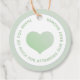 Ein zartes grünes Herz mit einer grünen Grenze und einer "Dusche" von kleinen Herzen auf der Rückseite des Anhängers. Ein schönes Anhänger für Babyduschgeschenke oder -favoriten.