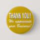 Danke, die wir Ihr Geschäft im Weiß auf dem Goldhintergrund schätzen, der im Knopf verfügbar ist, Aufkleber oder Magneten. Lassen Sie Angestellte den Knopf tragen, um Ihren Kunden zu danken und sie werden sie kennen zu lassen geschätzt, selbst wenn Sie zu beschäftigt sind, jeder Person zu erklären. Oder benutzen Sie den Aufkleber auf Ihren Rechnungen oder anderer spezieller Korrespondenz.