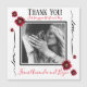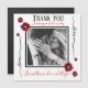 Vielen Dank! Passen Sie eine kurze Nachricht und Ihre Namen an. Elegantes rotes Mohndesign. Fügen Sie einen Schnappschuss von der Hochzeit, oder formalen Foto. Die Karte ist leer auf der Rückseite für Ihre handgeschriebene Nachricht. Schwarze Typografie für Danke. Handgeschriebene Liebe an den Seiten. Ihre Nachricht und Namen in rot.