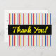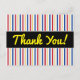 Dieses PostkartenAusrüstungsbeschreibungsstreifen mit den Farben, die durch die Farben einer Eishockeyarena inspiriert werden, rink. Das Blau wird durch die blauen Linien der Eisbahn zwei und das Rot durch die rote Mittellinie inspiriert. Das Gelb wird durch die gelbe Fußleiste an der Unterseite der Bretter inspiriert. Die weißen/grauen Farben werden durch die Farben der Bretter und des Eises inspiriert. Es kennzeichnet auch die Mitteilung "dankt Ihnen!" auf der Front im gelben Skript ähnlichen Text, zusammen mit einer personalisierten Mitteilung von Dankbarkeit auf der Rückseite.