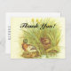 Die Vorderseite dieses Vintagen Look danke Ihnen Postcard Design enthält die Meldung "Danke!" in Schrift wie Text, zusammen mit einer Darstellung von zwei Enten in der Nähe von etwas Wasser. Auf der Rückseite steht eine personalisierte Dankesbotschaft. Eine Postkarte wie diese kann benutzt werden, um jemandem zu danken, der etwas Besonderes getan hat.